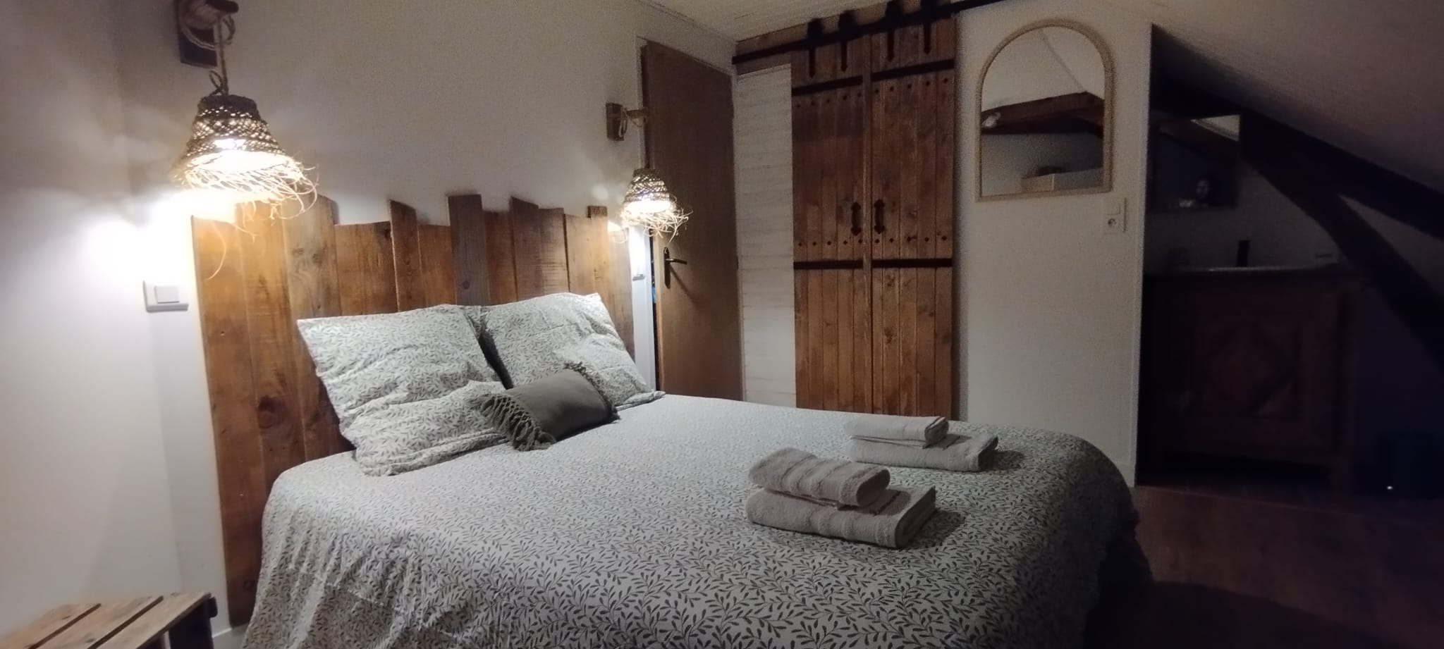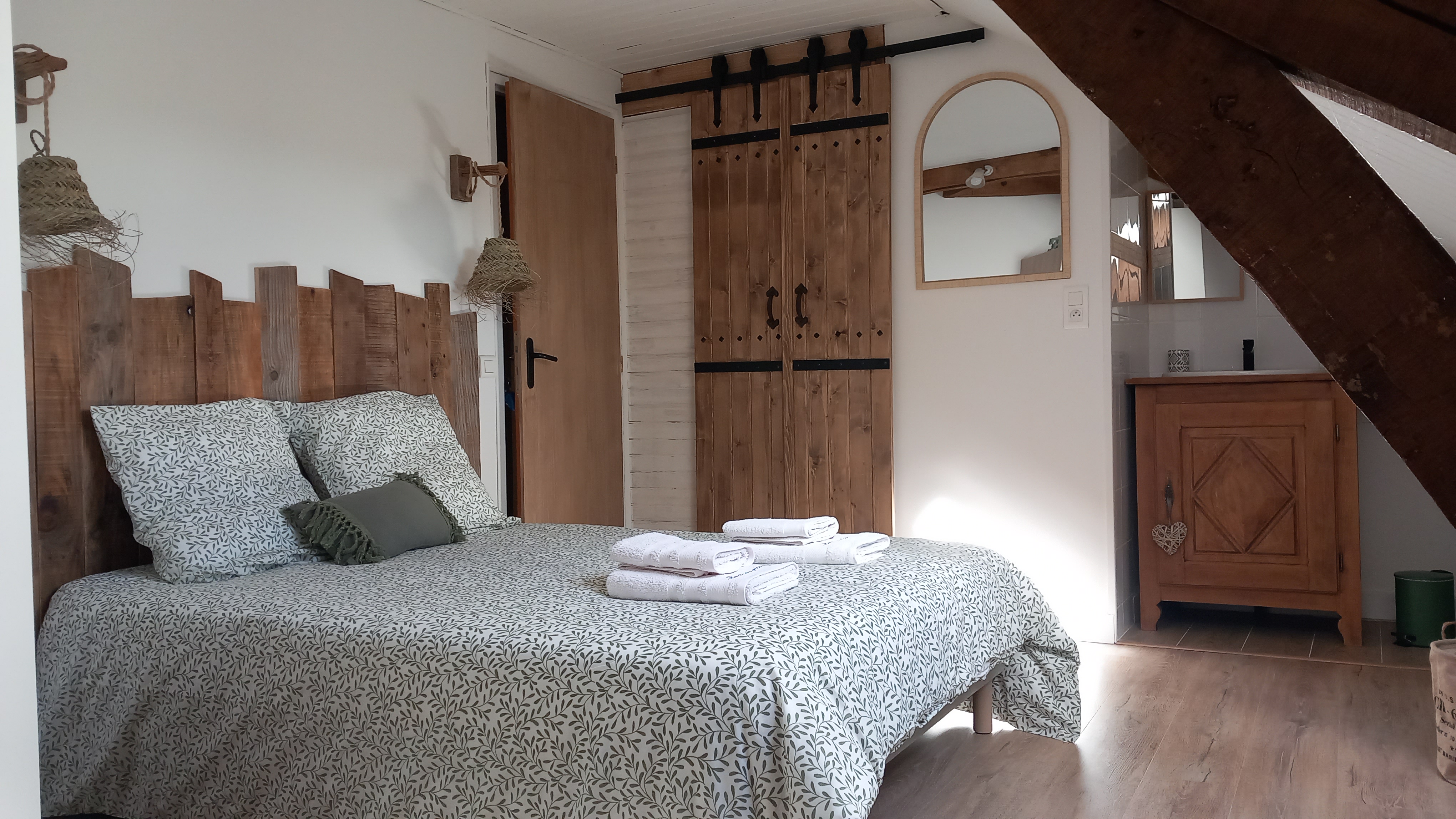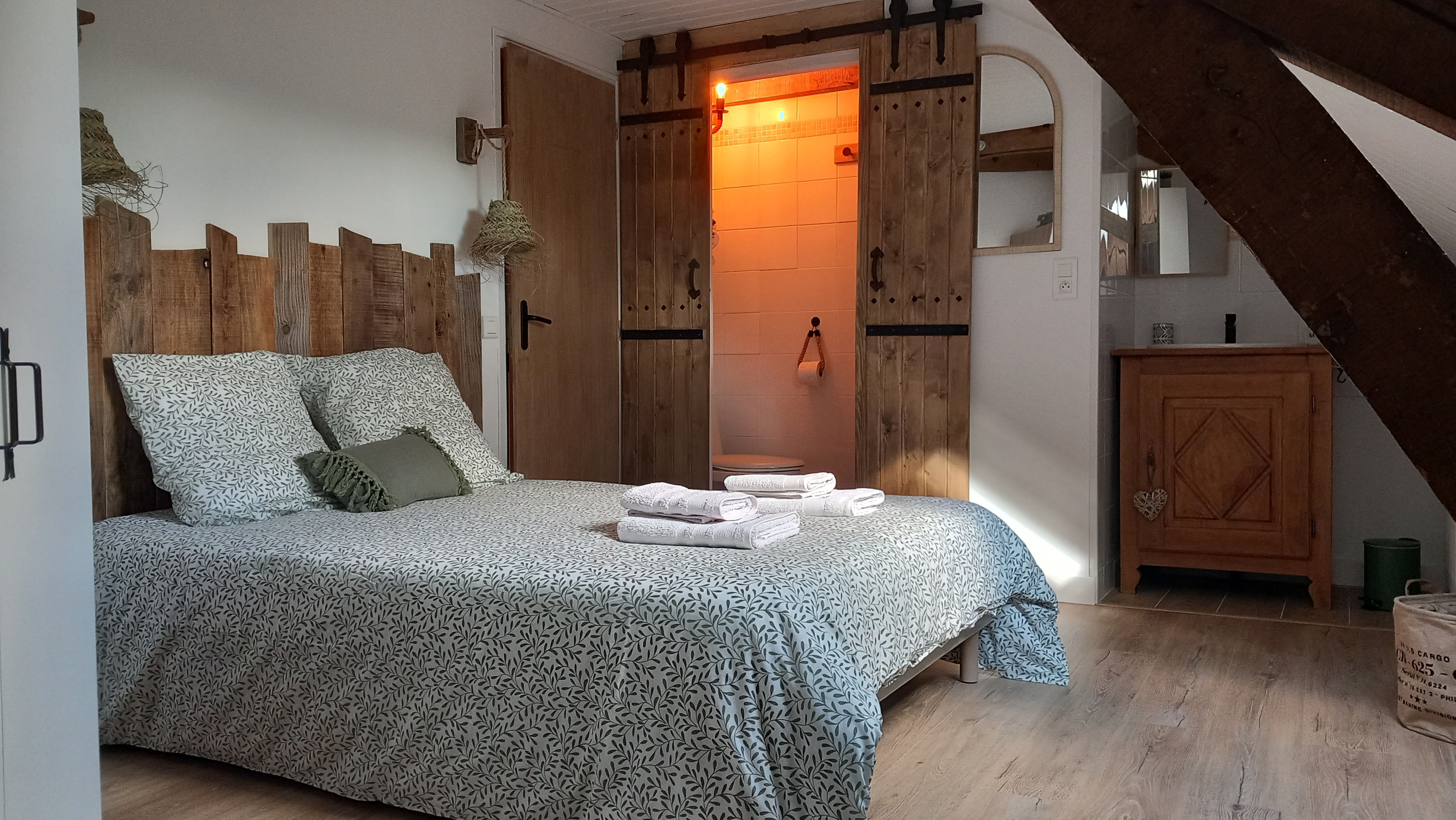 Nous sommes ravis de vous accueillir dans notre chambre d'hôte, un véritable havre de paix aux couleurs apaisantes d'eucalyptus. Nichée dans un cadre idyllique, notre chambre a été aménagée avec le plus grand soin pour vous offrir une expérience de séjour inoubliable, où chaque détail a été pensé pour votre bien-être.