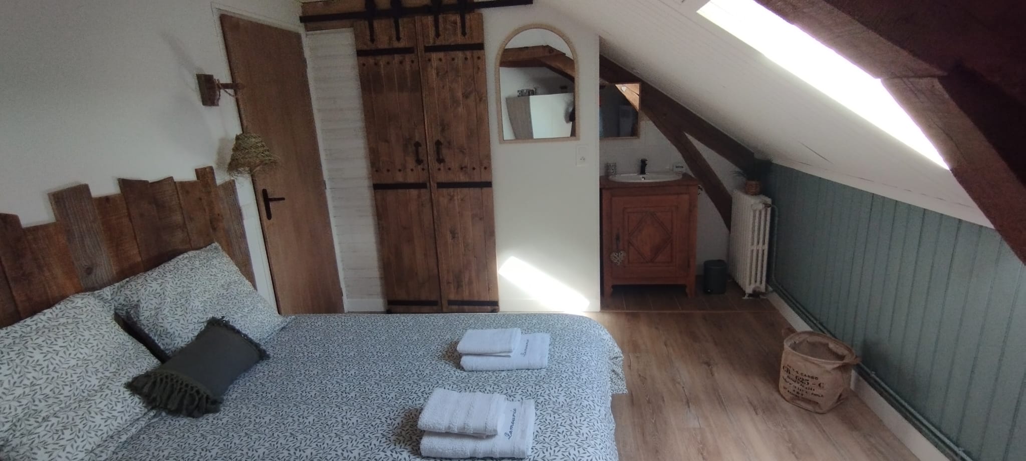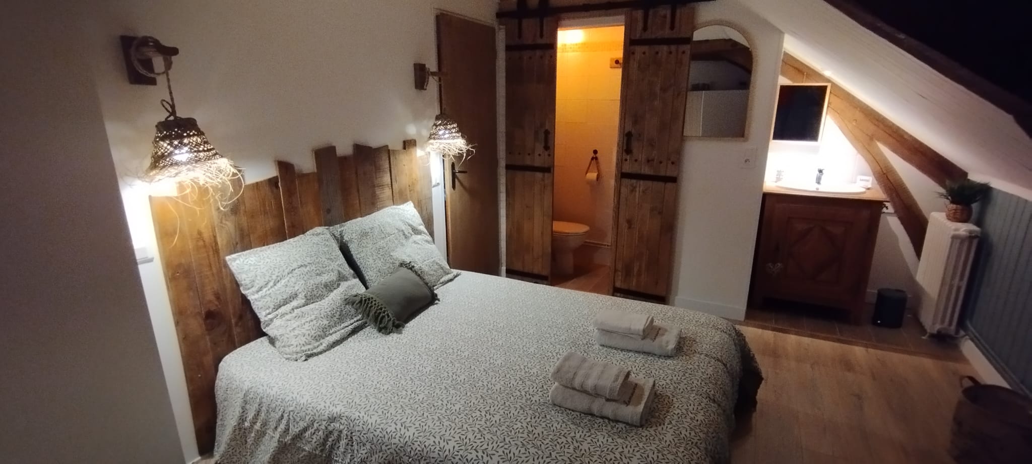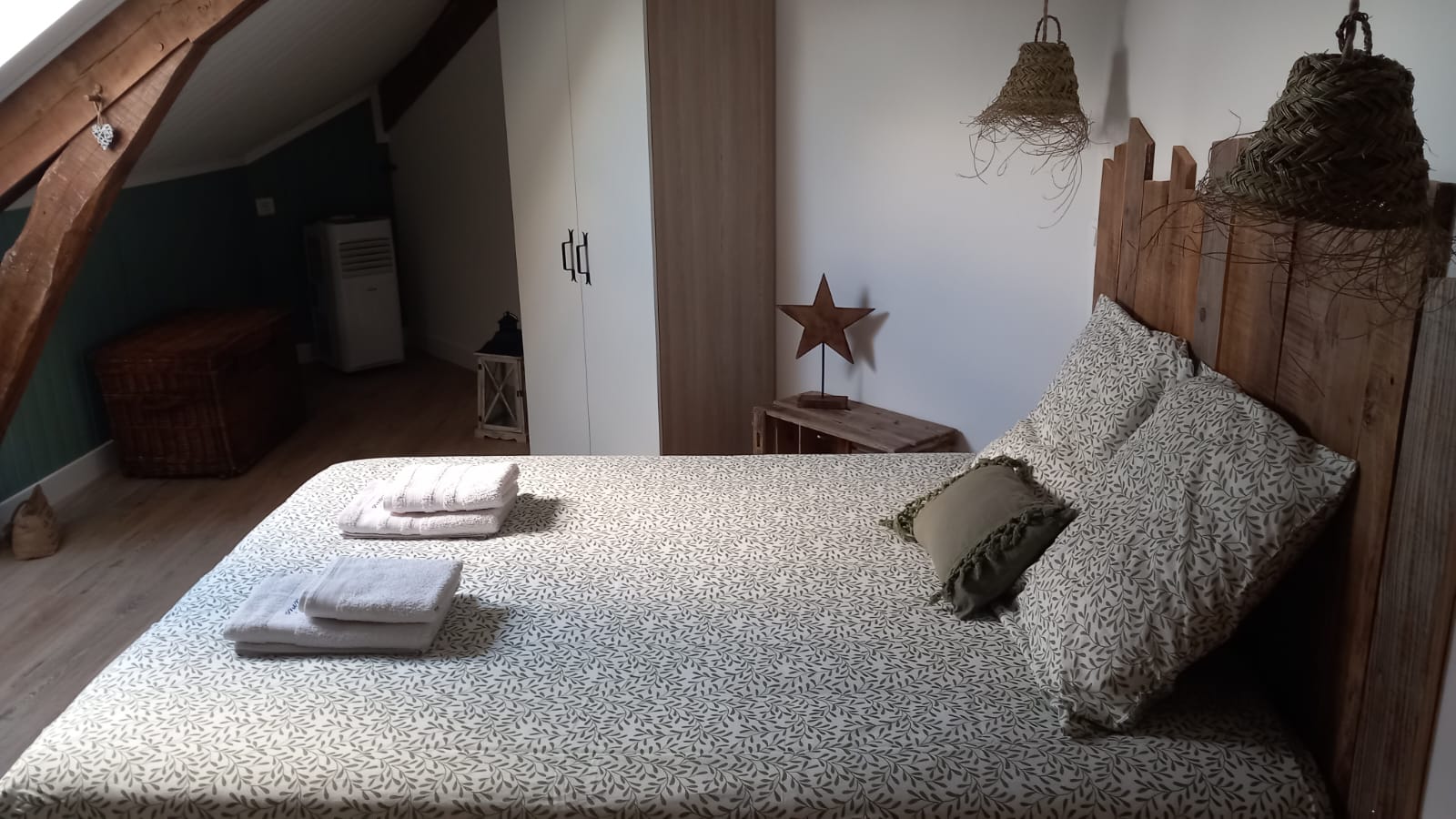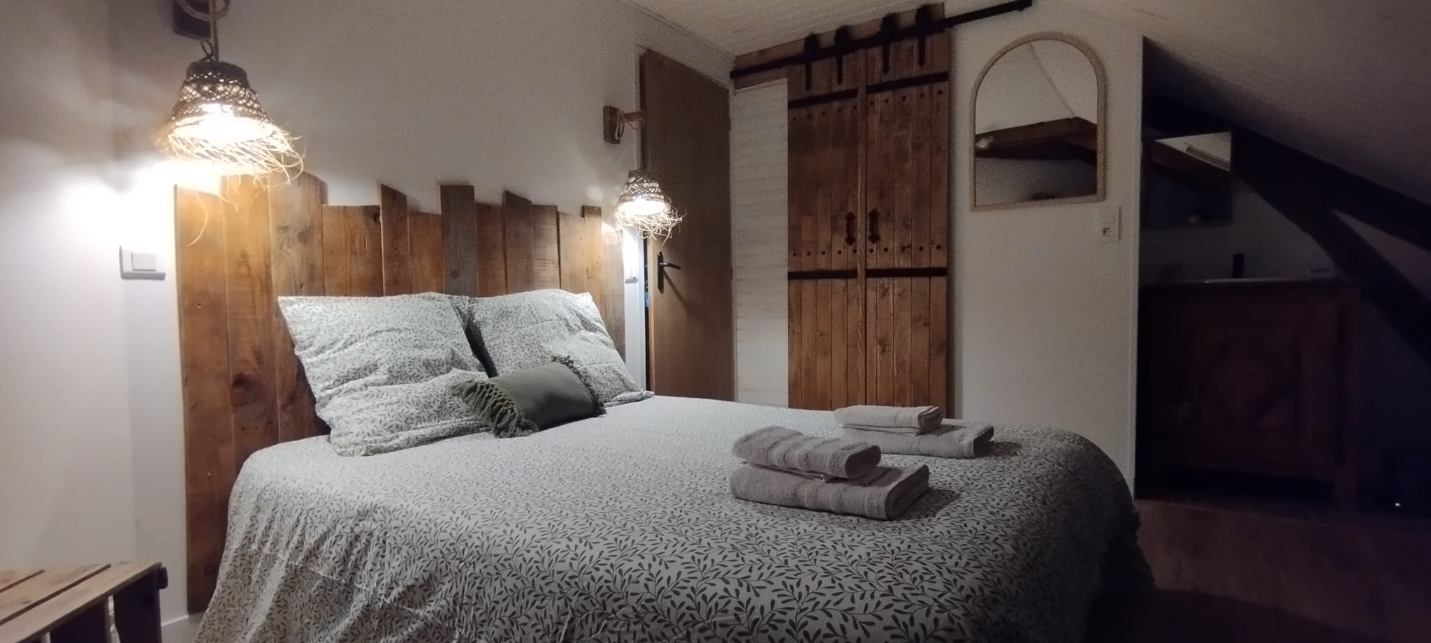 Nous sommes ravis de vous accueillir dans notre chambre d'hôte, un véritable havre de paix aux couleurs apaisantes d'eucalyptus. Nichée dans un cadre idyllique, notre chambre a été aménagée avec le plus grand soin pour vous offrir une expérience de séjour inoubliable, où chaque détail a été pensé pour votre bien-être.